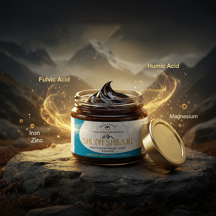 Shudh Shilajit Resin is a pure, natural mineral. Rich in fulvic acid and over 80 trace minerals, it is traditionally valued in Ayurveda for supporting vitality, stamina, and overall wellness.