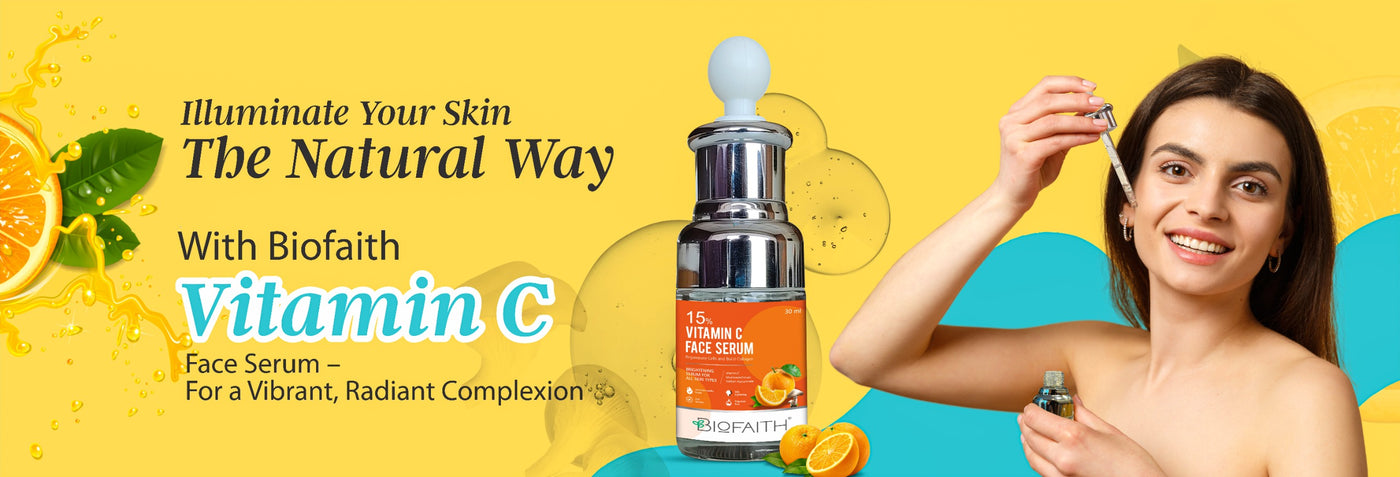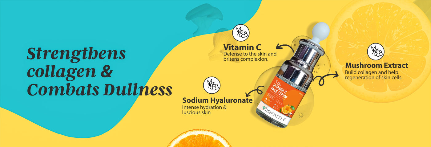 Biofaith 15% Vitamin C Face Serum with Mushroom Extract, Hyaluronic Acid & Niacinamide | 30ml
