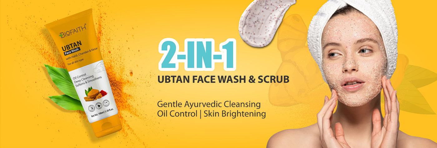 2-IN- 1 Ubtan Face Wash & Scrub | Deep Cleanses Exfoliates and polishes skin| With Natural Haldi, Chandan & Kesar | 100ml