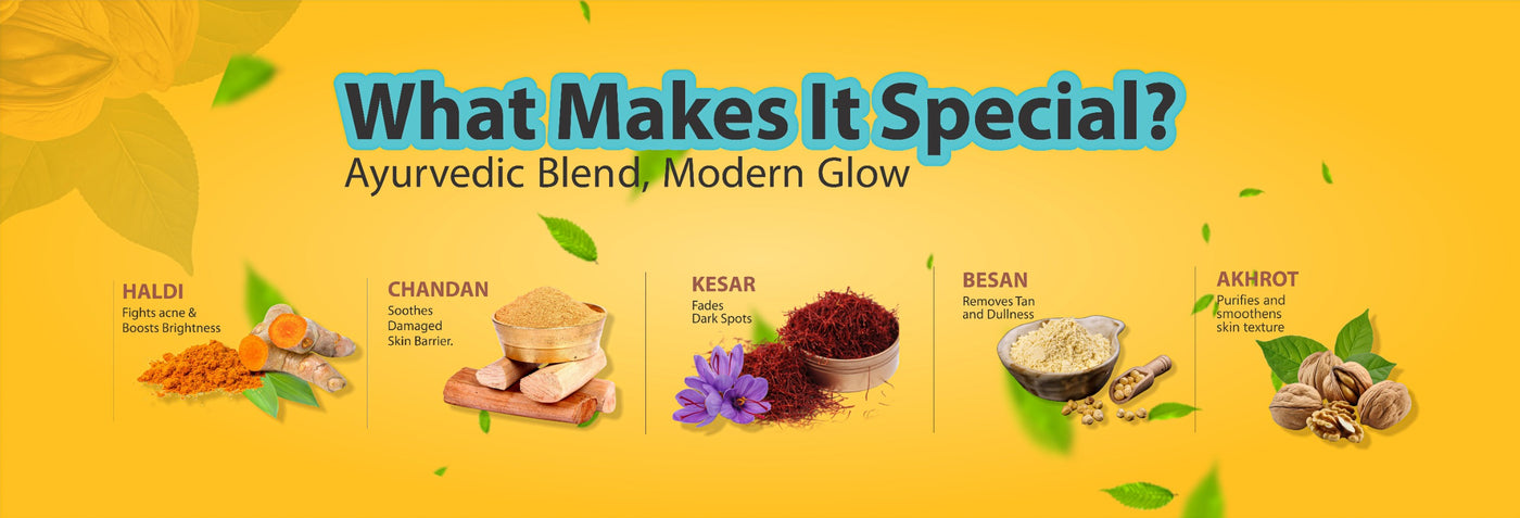 Besan (Gram Flour): Natural exfoliator that removes tan and dead skin cells.