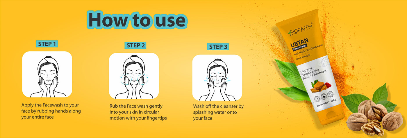 - Take a sufficient quantity of Biofaith Ubtan Face Wash in your palm.