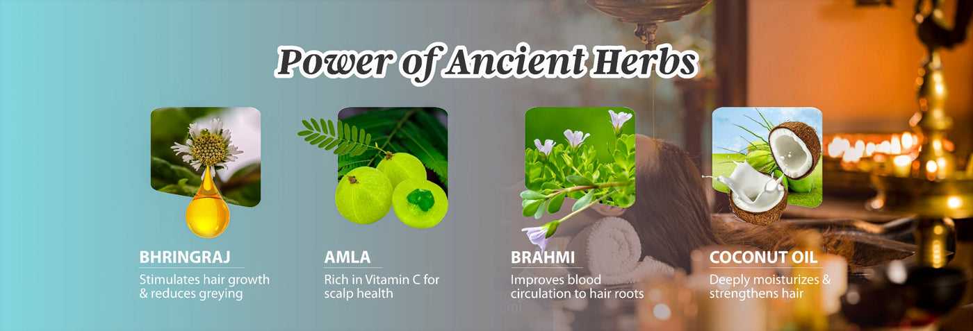 Brahmi- Enhances scalp health and stimulates hair follicles.
