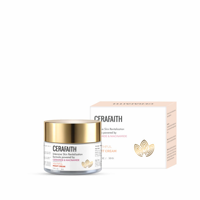 Wake up to rejuvenated, glowing skin with Cerafaith Night Cream. This nourishing formula, enriched with ceramide and niacinamide, works overnight to restore your skin’s natural moisture barrier, fade dark spots, and improve overall skin texture. Perfect for all skin types, this cream ensures long-lasting hydration while enhancing your skin's radiance and vitality.