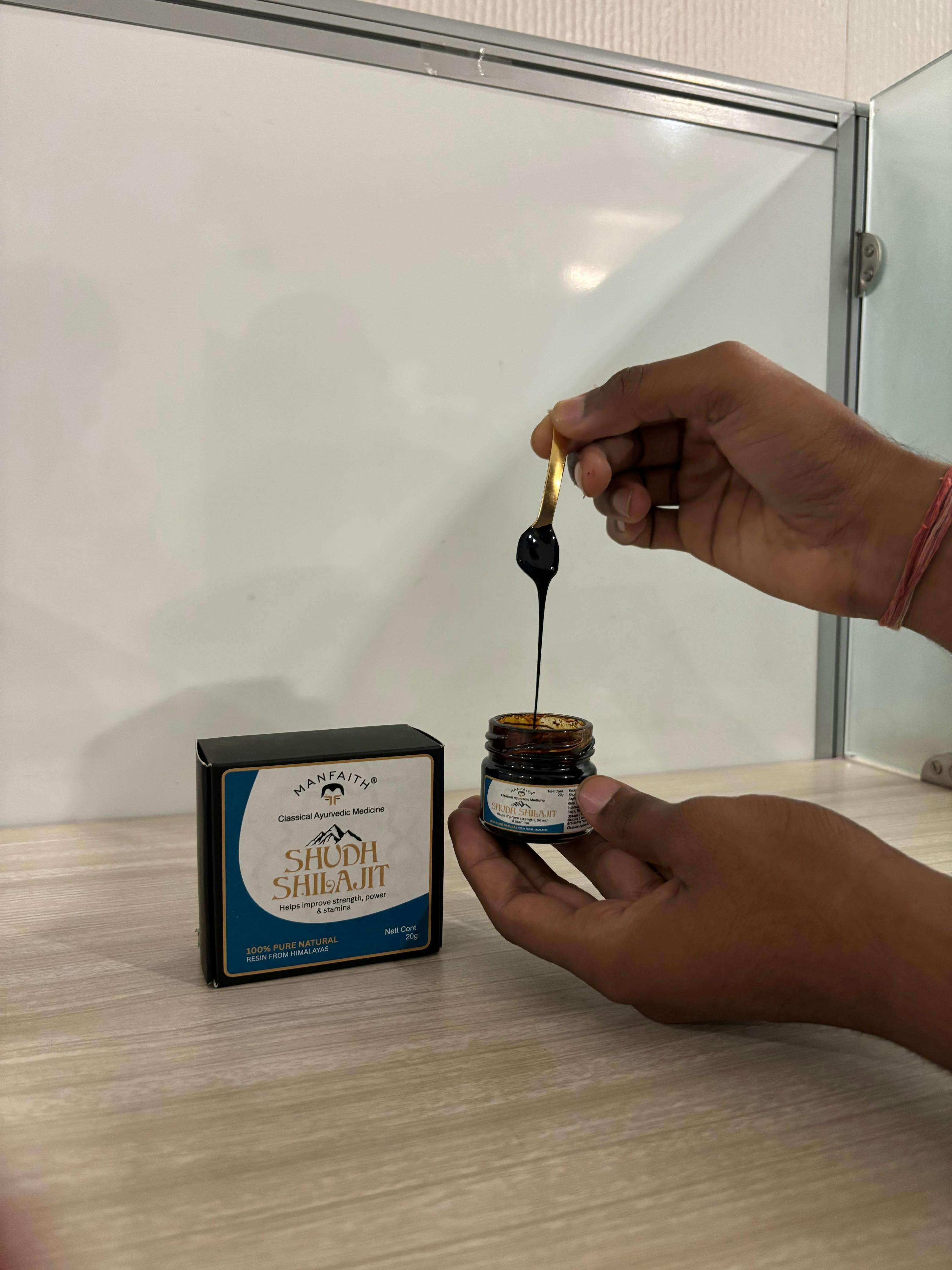Shudh Shilajit Resin - NLT 68% Fulvic Acid with Free Brass Spoon | Improves strength, power & stamina | 100% Pure Natural | 20g